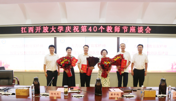 座谈会上,校党委书记贺瑞虎,党委副书记、校长黄平槐为长期从教教师颁发荣誉证书并献花,表彰他们热爱党的教育事业、爱岗敬业、勤勉工作的奉献精神。希望全校教职员工向他们学习,追寻“教育家精神”,做时代“大先生”。将“为党育人、为国育才”的志向抱负转化为扎根赣鄱大地、潜心教书育人、培养有用之才的实际行动,为教育强国建设贡献力量。