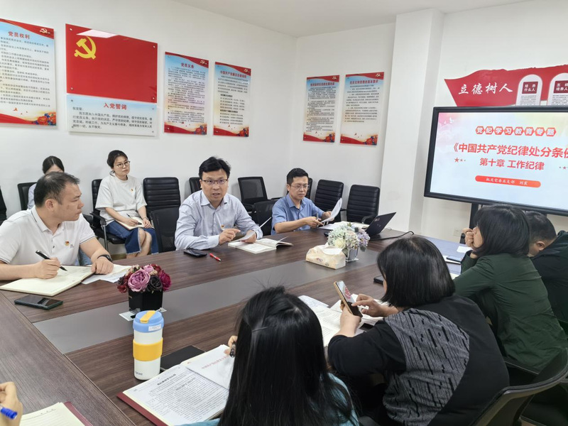 支部书记从什么是工作纪律、违反工作纪律的行为、工作纪律修订的内容三方面领学了《中国共产党纪律处分条例》第十章——工作纪律,通过深入浅出,通俗易懂地对《中国共产党纪律处分条例》第十章中新增的、平时容易忽略的、可能存在认识误区等违纪行为进行重点解读,并以案示警,深入剖析违纪典型案例,使全体党员受警醒、明底线、知敬畏,切实做到将增强党性、严守纪律、砥砺作风融入日常。随后,支部成员围绕学习内容,联系工作生活实际进行交流分享。