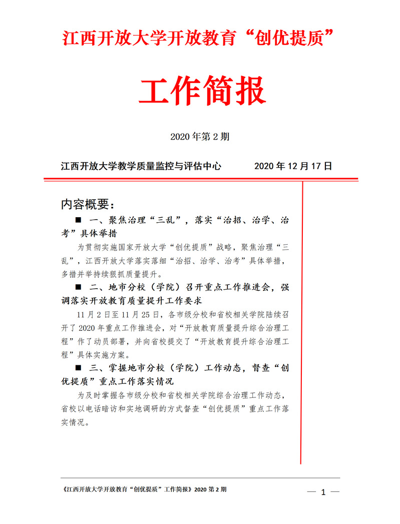3522vip浦京集团官网开放教育“创优提质”工作简报 2021年第2期(总第2期)