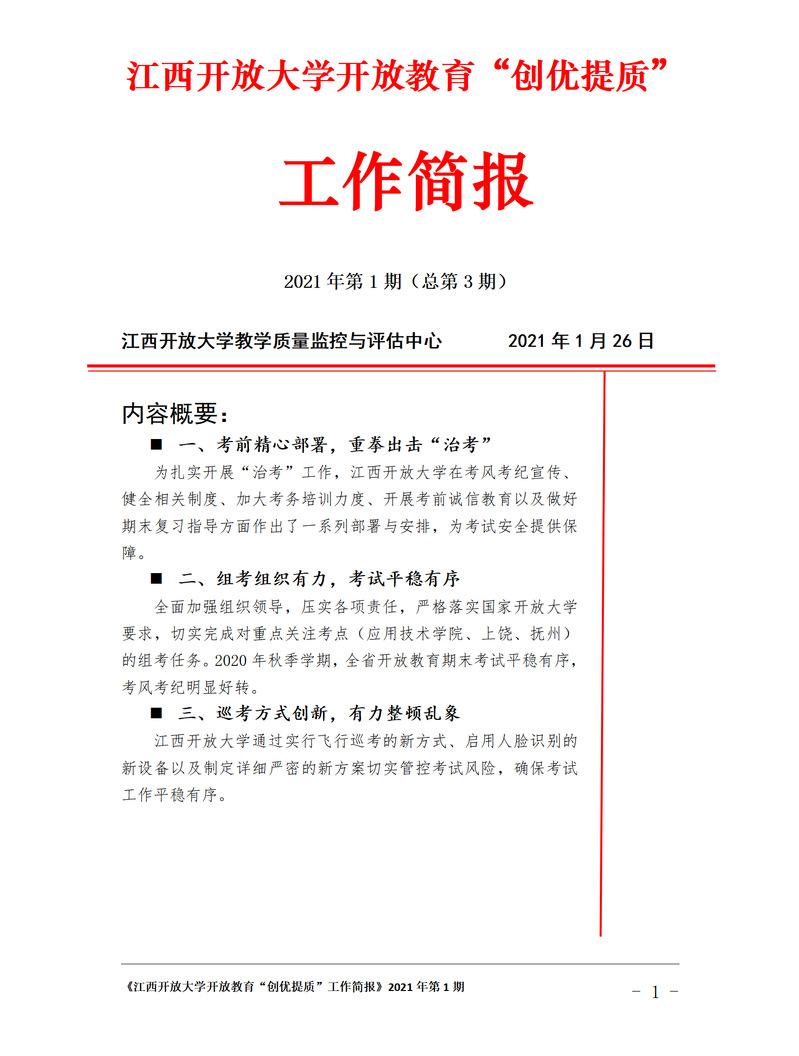 3522vip浦京集团官网开放教育“创优提质”工作简报 2021年第1期(总第3期)