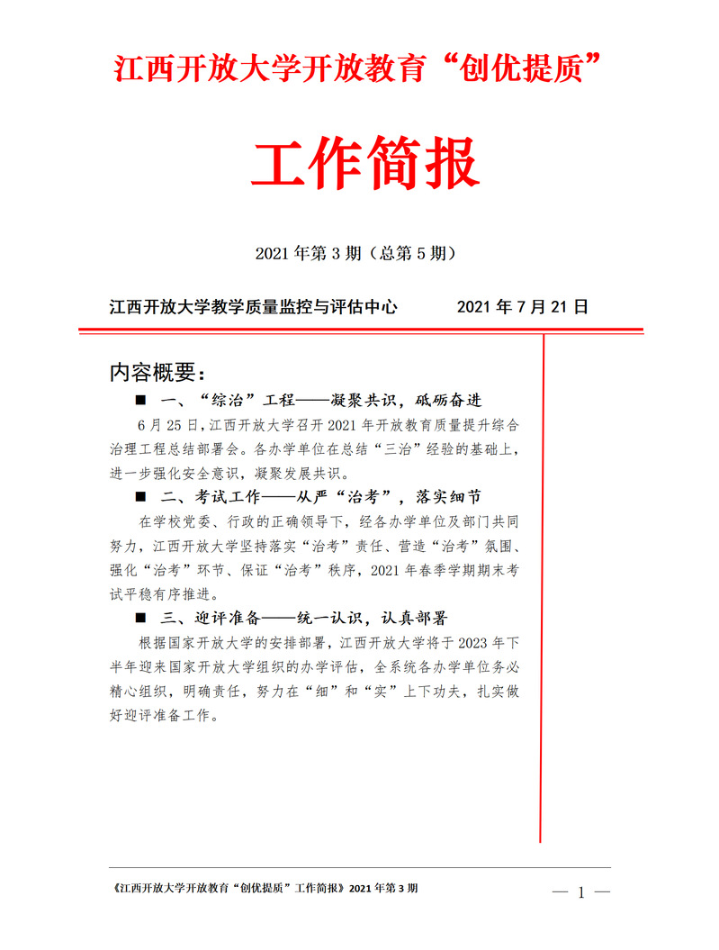 3522vip浦京集团官网开放教育“创优提质”工作简报 2021年第3期(总第5期)
