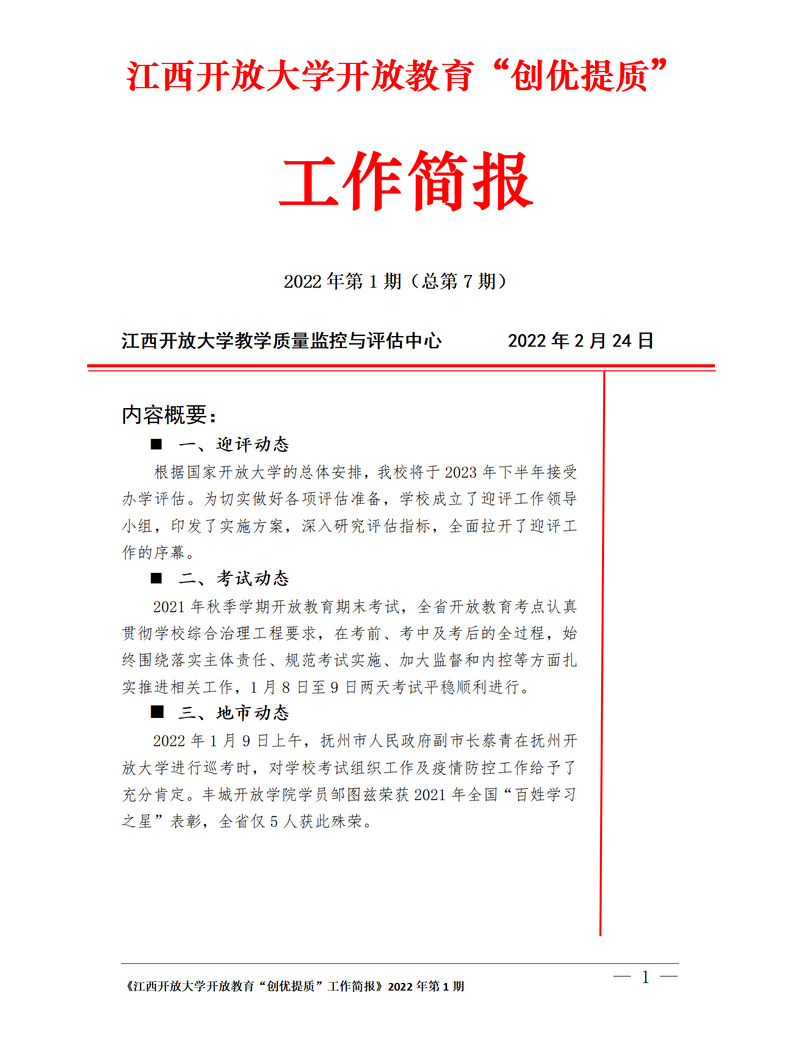 3522vip浦京集团官网开放教育“创优提质”工作简报 2022年第1期(总第7期)