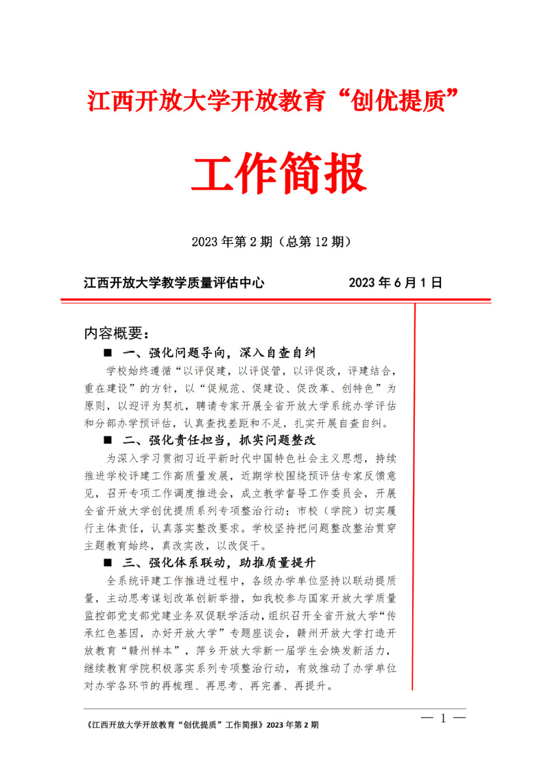 3522vip浦京集团官网开放教育“创优提质”工作简报2023年第2期(总第12期)