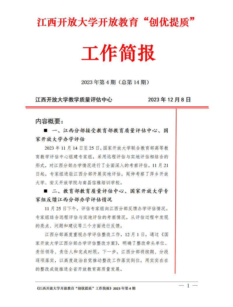3522vip浦京集团官网开放教育“创优提质”工作简报2023年第4期(总第14期)