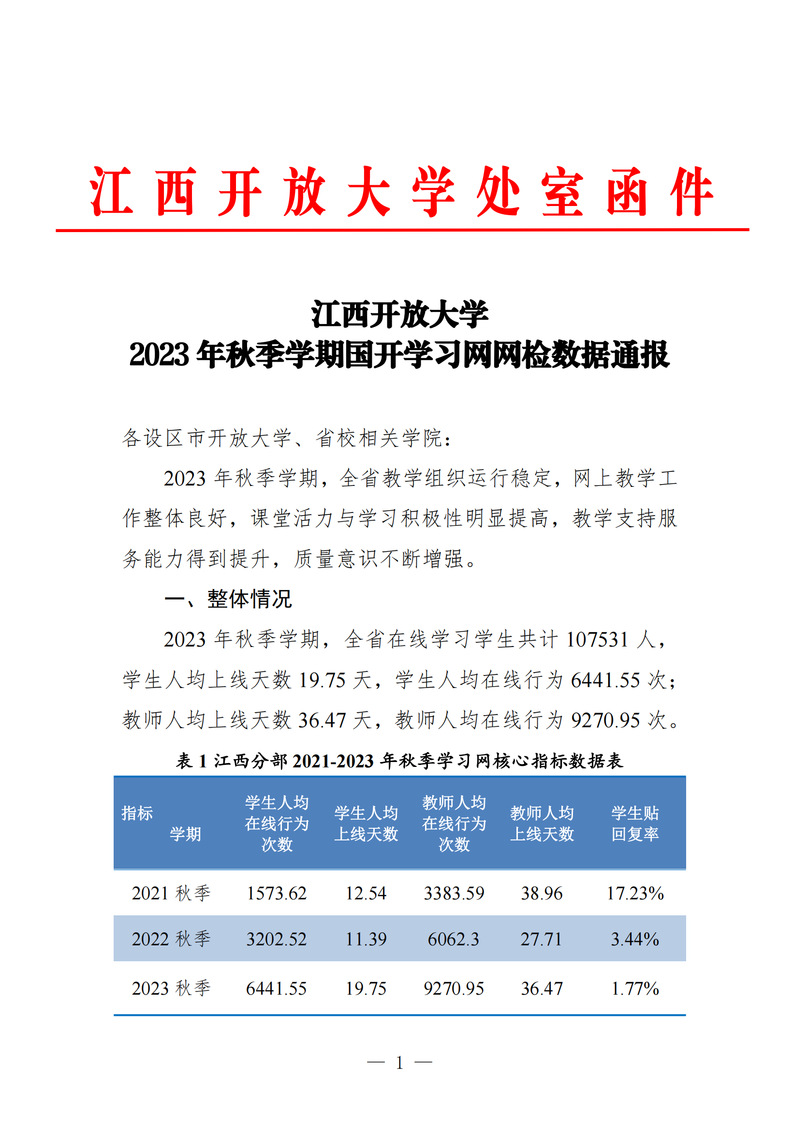 【网检数据】3522vip浦京集团官网2023年秋季学期国开学习网网检数据通报