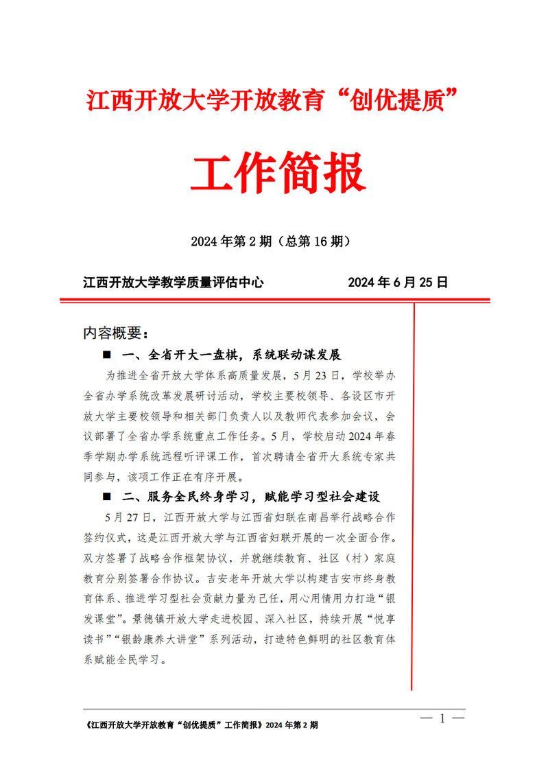 3522vip浦京集团官网开放教育“创优提质”工作简报2024年第2期(总第16期)