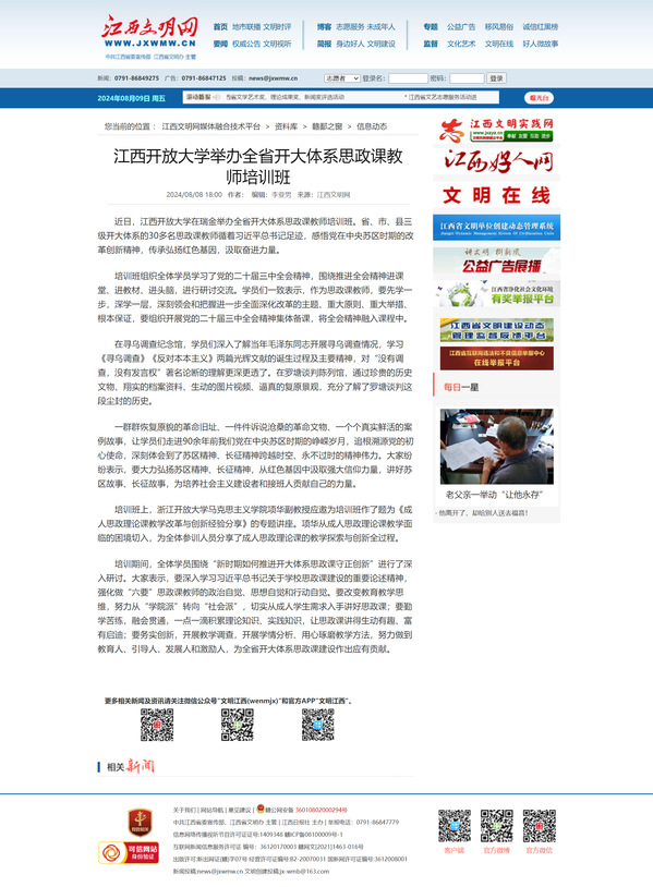 近日,3522vip浦京集团官网在瑞金举办全省开大体系思政课教师培训班。省、市、县三级开大体系的30多名思政课教师循着习近平总书记足迹,感悟党在中央苏区时期的改革创新精神,传承弘扬红色基因,汲取奋进力量。