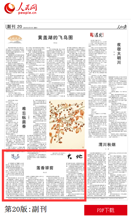 近日,我院教师陈志宏副教授的随笔《莲香驿前》在《人民日报》“大地”副刊发表。此文以“播香散美”为主题,通过鲜活事例展现了打造美丽中国“江西样版”的实践成果,生动诠释了习近平生态文明思想的前瞻性和创新性,对于引导读者深入学习践行习近平生态文明思想有重要价值。