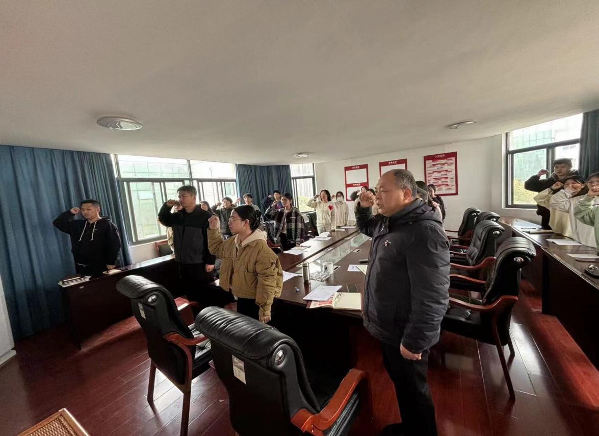 该支部副书记钟佳钰代表支部向蔡欣、陈怡均同志赠送生日祝福,并主持与会党员面向党旗重温入党誓词。