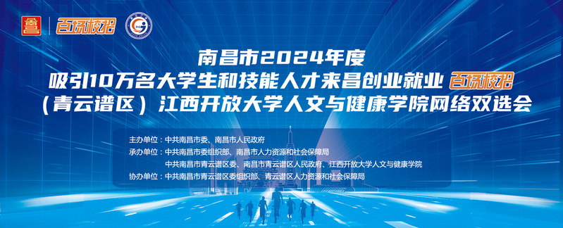 为贯彻中央人才工作会议精神,落实省委、市委党代会要求,依据中共南昌市委组织部、南昌市人力资源和社会保障局《关于印发<南昌市2023-2024年度吸引10万名大学生和技能人才来昌创业就业工作实施方案>的通知》(洪人社发〔2023〕154号)及《关于印发《青云谱区2023-2024年度吸引10万名大学生和技能人才来昌创业就业“百场校招”(秋季和春季)活动方案》的通知(青人社发〔2023〕37号)精神,经研究,决定开展南昌市2024年度"百场校招"(青云谱区)线上双选会。