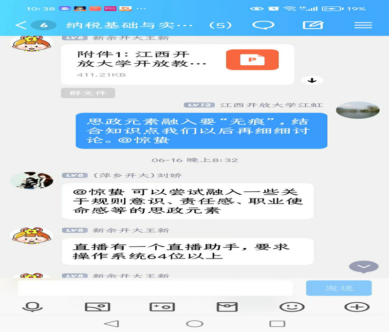 《纳税基础与实务》课程网络教学团队学院关于课程思政教学展开了深入研讨,且取得一定成效。教师根据课程特色,积极挖掘课程思政元素,并建设课程思政教学案例库。该团队其中一名辅导教师赣州开放大学李晶晶提到,讲授“消费税”知识点可以从征税范围方面嵌入思政元素,比如高档手表、贵重首饰等纳入征收范围,是缩小收入差距的一种体现,将“实现共同富裕”的思想内涵融入课程教学。