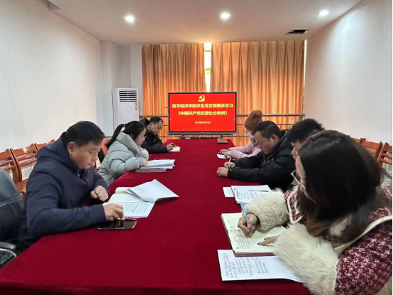 纪律是管党治党的“戒尺”,也是党员干部约束自身行为的标准和遵循。为使支部全体党员深入领会新修订的《中国共产党纪律处分条例》重点内容和着力方向,2月27日,数字经济学院学生党支部组织开展学习新修订的《条例》专题学习。会议由党支部书记张倩主持,支部全体党员参加会议。学院党委副书记、纪委书记王松华列席会议。