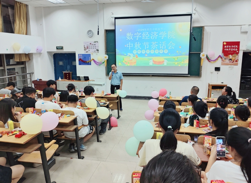 平分秋色一轮满,长伴云衢千里明。从盛夏到金秋,从新月到满月,又是一年花好月圆。9月14日晚,数字经济学院在教学楼307举行了以“中秋乐创意,趣味不停息”为主题的中秋茶话会。学院党委书记陈维佳,学院党委副书记、纪委书记郑金胜,团学科负责人张倩,团学科老师王紫莹以及学院100余名留校学子参加了此次茶话会。活动现场欢声笑语,师生齐聚一堂,共话中秋。
