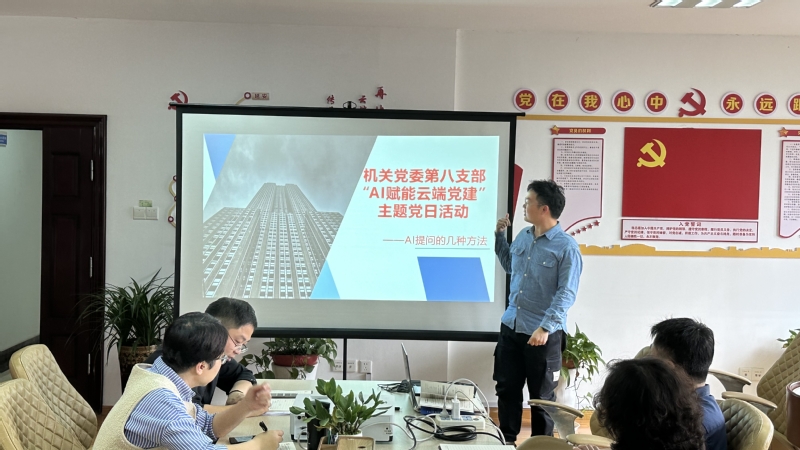 为深入学习贯彻习近平新时代中国特色社会主义思想和党的二十大精神,顺应信息化、数字化、网络化、智能化发展趋势,让支部党员深入了解并掌握人工智能相关知识,提升队伍的科技素养和创新意识,结合党建工作的目标和特征,使人工智能在党建工作上彰显独特优势,4月17日,机关党委第八支部举办“AI赋能云端党建”主题党日活动。活动由支部书记郭英主持。