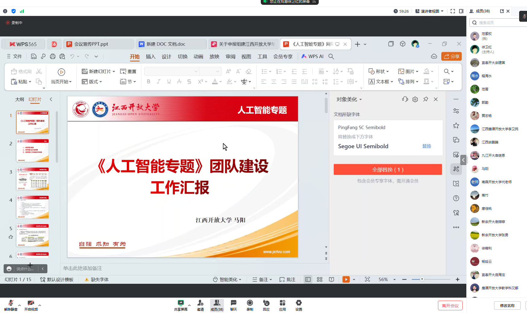 马阳老师以《人工智能专题》团队建设为例,从教学团队建设、教学团队运行及效果、教学团队工作的自评与改进等3个方面对网络教学团队建设做了丰富的经验分享。