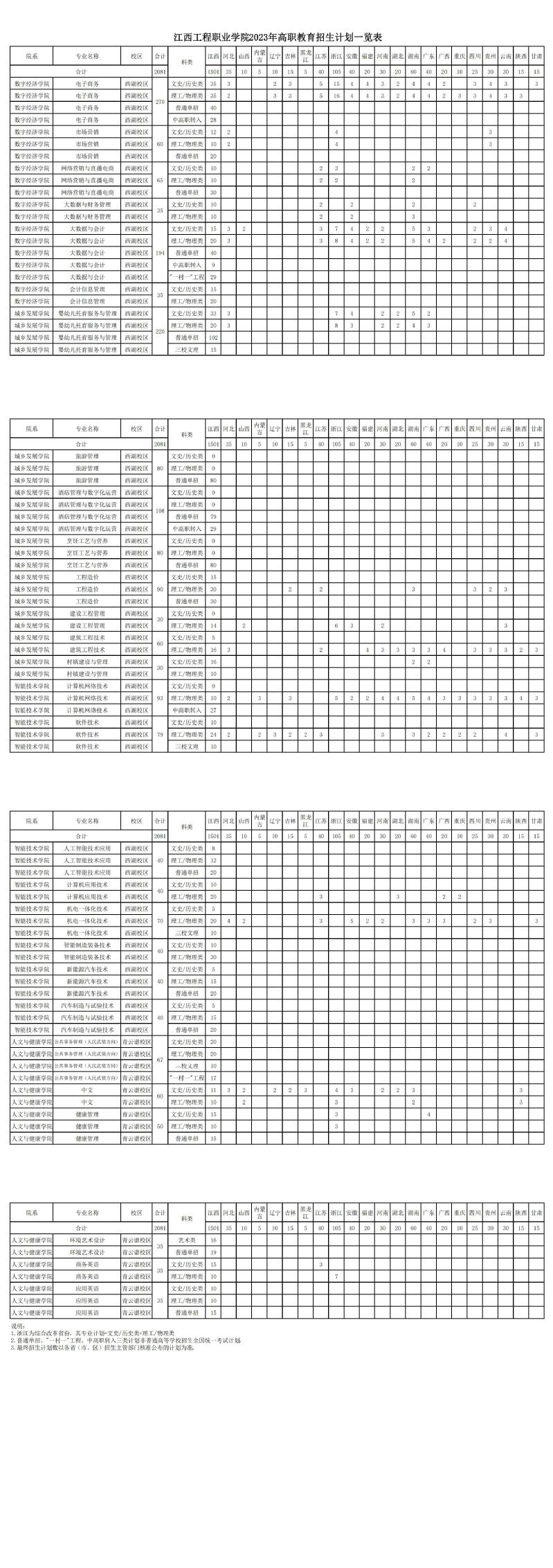 江西工程职业学院2023年高职教育招生计划